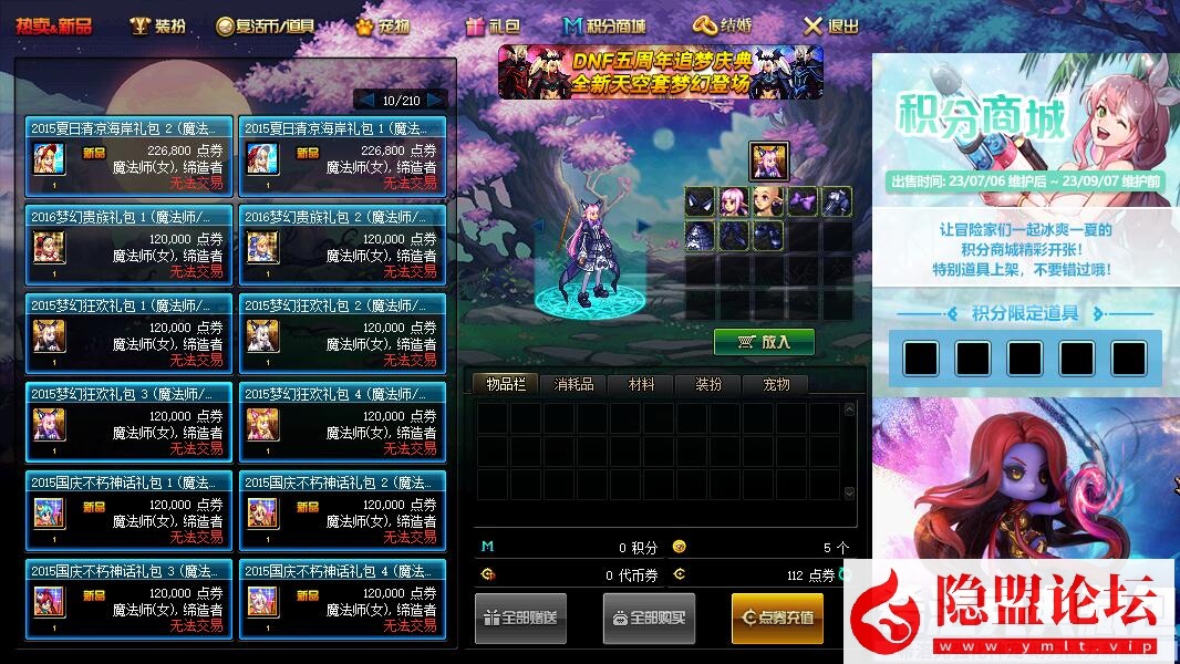 <积分商城上架6种物品 材料盒,全属性攻击宝珠,全属性永久提升自选盒子等,并重新设置了价格>