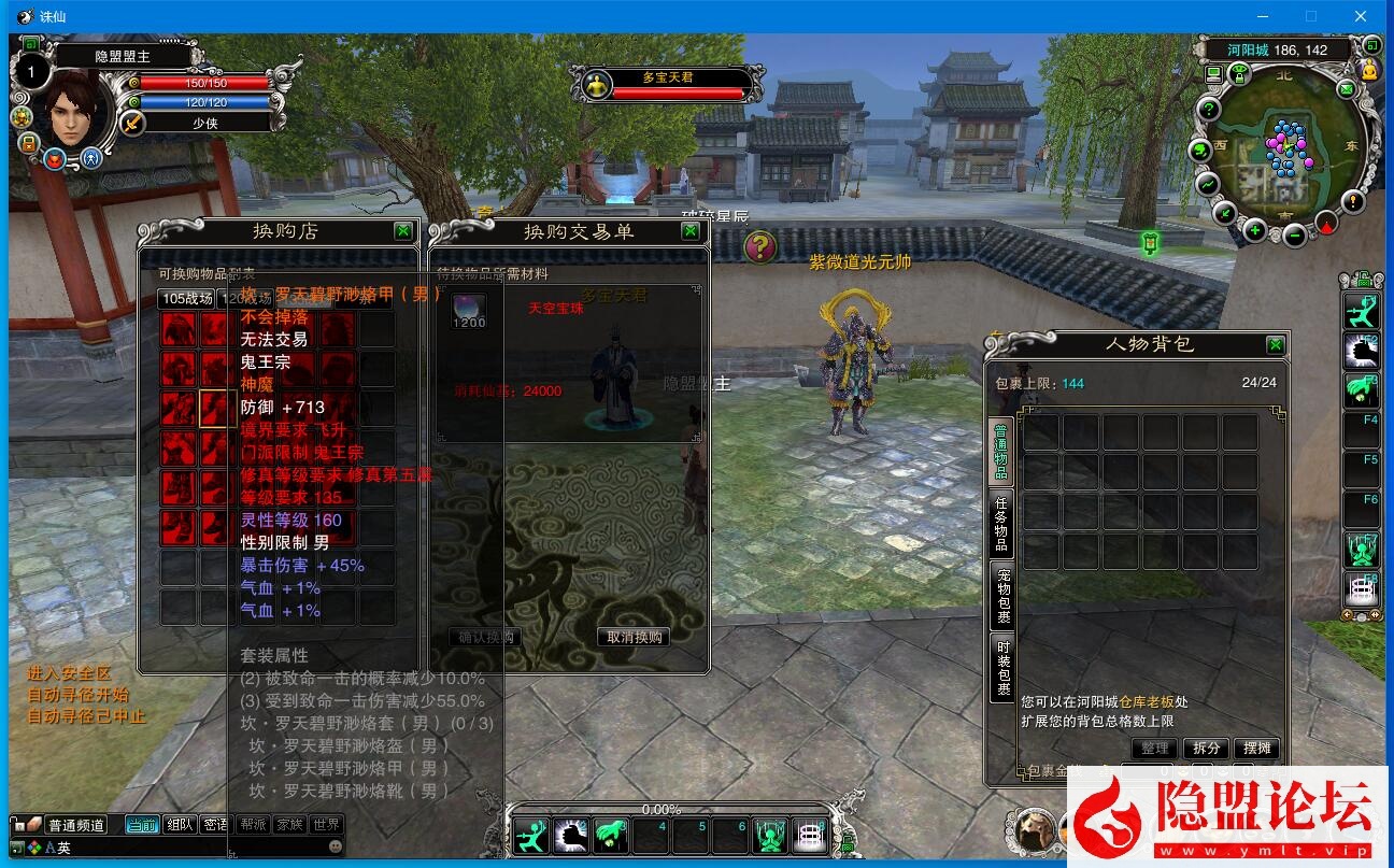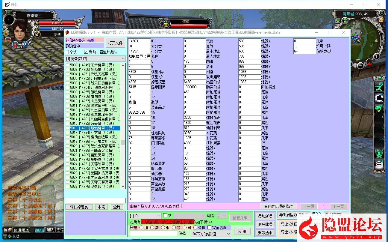 7:河阳仓库银票商店留了两件变态装备出售,还有一些本来官方就有的道具,不喜可以自己删除。